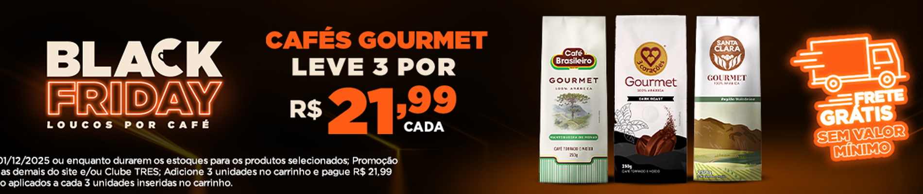 Confira a linha de café gourmet, levando 3 pague R$21,99 cada e celebre a arte de fazer café com a 3 Corações!