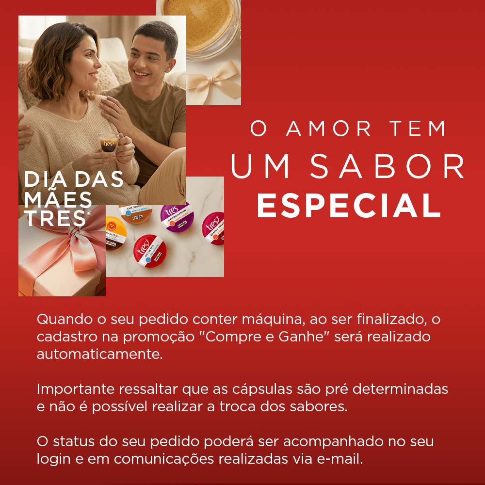 Compatível exclusivamente com cápsulas TRES®. Sistema multipressão para diferentes tipos de bebidas. Compartimento interno para até 4 cápsulas usadas. Livre de BPA. Garantia de 5 anos (incluindo 90 dias do prazo legal). Produto sustentável: seminovo, com rigoroso processo de reparo e higienização. Pode apresentar pequenos sinais de uso ou marcas. Para assistência técnica, entre em contato: 0800 979 20 21.