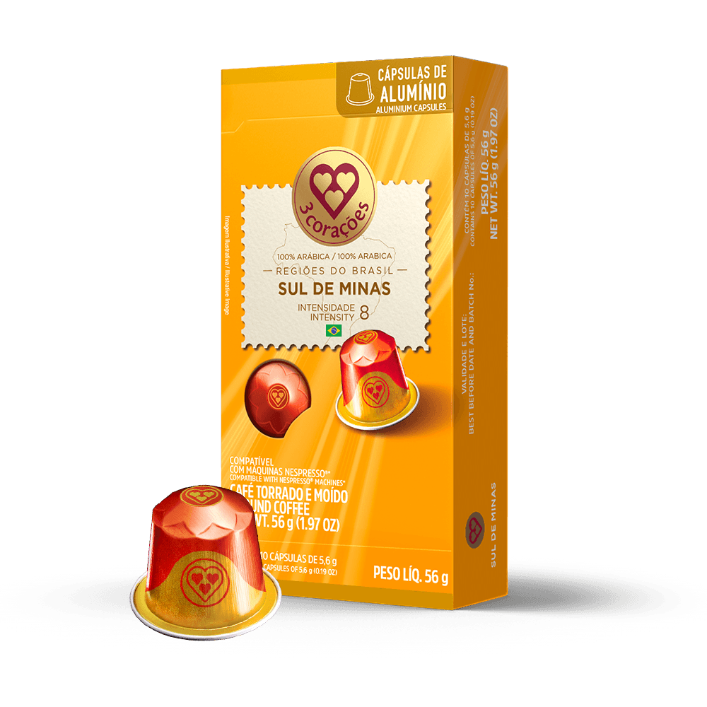 O Café Compatível Nespresso® Sul de Minas 3 Corações é um café 100% arábica cultivado em região vulcânicas, localizada nos municípios de Poços de Caldas, Andradas entre outras. Com intensidade 8, este espresso apresenta aroma adocicado, acidez cítrica e corpo médio, além de sabor de caramelo e castanha. Uma escolha perfeita para quem busca doçura intensa e sofisticação em cada xícara.