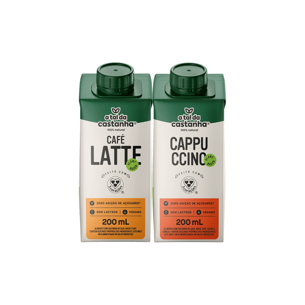 O Kit Bebidas Vegetais une sabor e cremosidade em duas opções irresistíveis: Café Latte e Cappuccino. Produzidas pela A Tal da Castanha em parceria com a 3 Corações, essas bebidas combinam o café encorpado com a suavidade do leite vegetal, oferecendo uma experiência única e sem ingredientes de origem animal. Ideais para começar o dia ou aproveitar uma pausa com sabor e leveza.