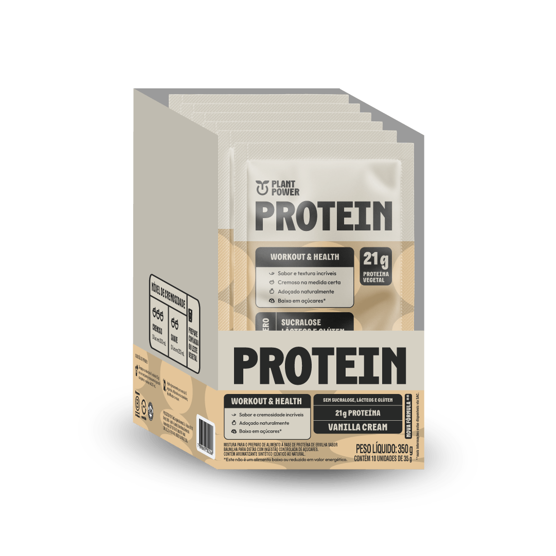 Suplemento alimentar sabor Vanilla Cream, livre de glúten e lactose.Cada caixa contém 10 unidades de sachê Protein com 21g de proteína, ideal para complementar sua alimentação e garantir que o corpo receba a quantidade necessária desse nutriente. Consumir em uma dieta equilibrada. Consulte sempre seu médico ou nutricionista.