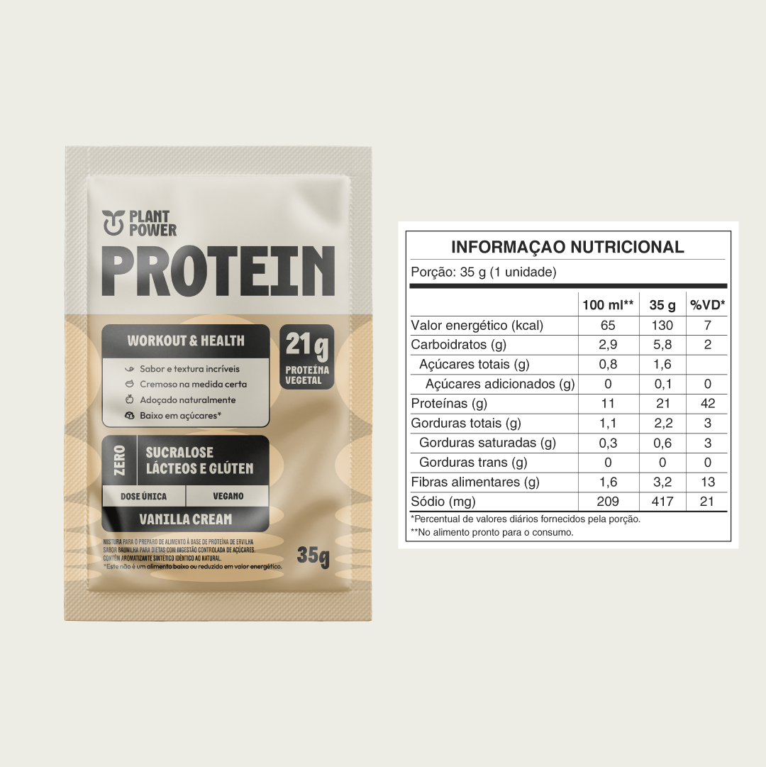 Suplemento alimentar sabor Vanilla Cream, livre de glúten e lactose.Cada caixa contém 10 unidades de sachê Protein com 21g de proteína, ideal para complementar sua alimentação e garantir que o corpo receba a quantidade necessária desse nutriente. Consumir em uma dieta equilibrada. Consulte sempre seu médico ou nutricionista.Esconder descrição