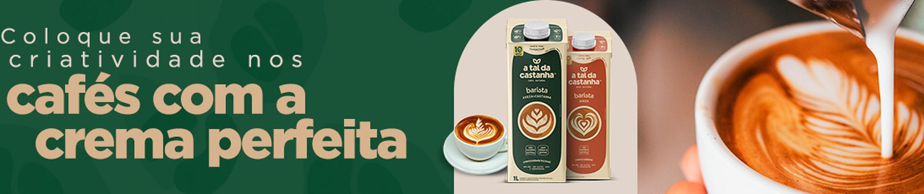 heia de sabor, além de render um charme especial à bebida, agora, imagine essa mesma crema irresistível, mas com um diferencial ainda mais interessante, apresentamos a você A Tal da Castanha Barista, o leite vegetal perfeito para criar uma crema incrível em suas xícaras de café cremoso.